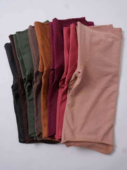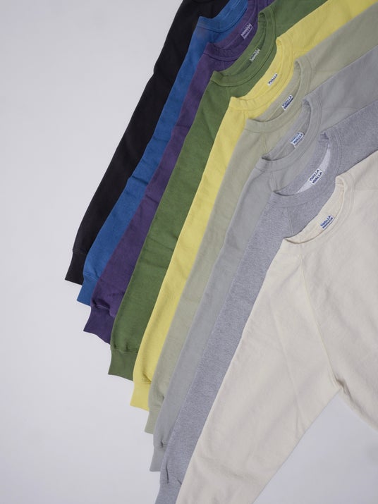今回のPOP-UPイベントでは、毎シーズン好評のラインナップに加え、会期3日間限定のアイテムをご用意いたします。あわせて、のロングセラーである「13oz スウェットシリーズ」にフォーカス。13オンスの高密度ながら、裏地は起毛ではなく軽量パイル仕様を採用。重厚な見た目に反し、ロンTのような軽やかな着心地を実現するブランドの定番モデルです。