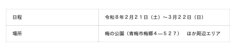 本まつり期間中も、梅の公園内では、青梅グルメマルシェや吉野梅郷梅酒まつりなどのイベントを開催し、観梅しながら老若男女問わず楽しめる企画を実施します。