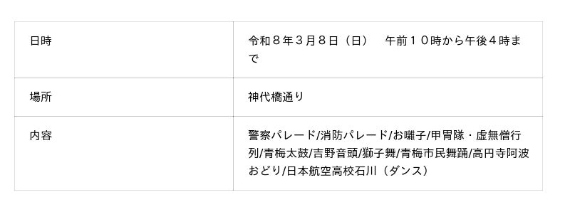 詳細は青梅市観光協会ホームページからご確認ください。