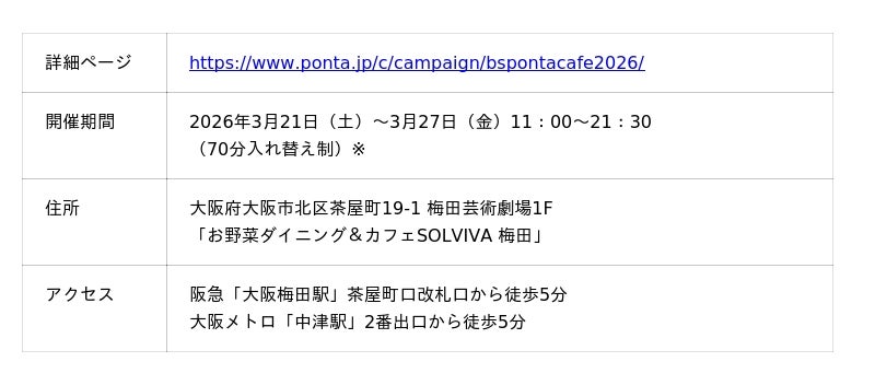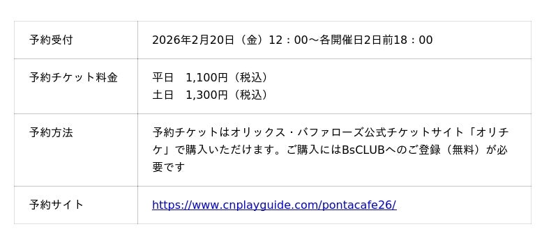 共通ポイントサービス「Ponta(ポンタ)」を運営する株式会社ロイヤリティ マーケティング(本社:東京都渋谷区、代表取締役社長:勝 文彦、以下「LM」)は、2016年シーズンからオリックス・バファローズのスポンサーをしており、2026年シーズンはユニフォームパンツスポンサーとして応援企画を展開しています。2026年3月21日(土)~3月27日(金)に大阪で開催する、「バファローズ☆ポンタ カチ星カフェ ~バファ☆ポン Loves Again!~」のオリジナルメニューやグッズをお知らせします。