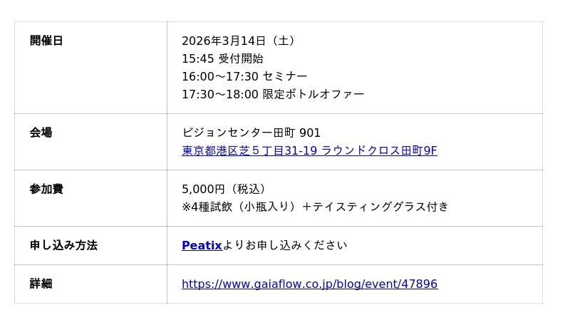 3月14日(土)東京 セミナー&スペシャルテイスティング