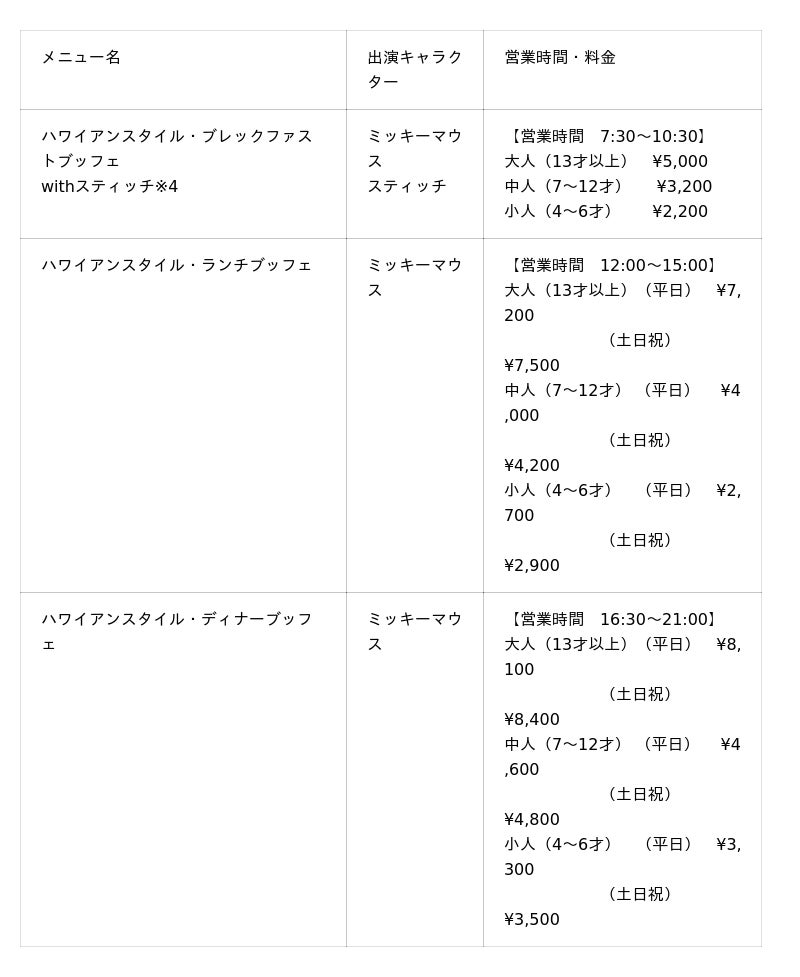 ※4 ハワイアンスタイル・ブレックファストブッフェwithスティッチのご利用は、ディズニーアンバサダーホテルにご宿泊の方に限ります。 (チェックイン日は除く)