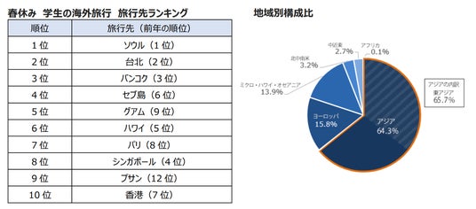 株式会社エイチ・アイ・エス(本社:東京都港区 以下、HIS)は、2026年2月・3月における旅行予約状況から、学生の海外旅行予約動向について下記のとおりにまとめました。