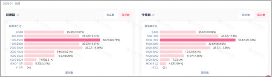 ■ 日本市場 商品価格帯別分布(1SKU単位の販売単価の分布)