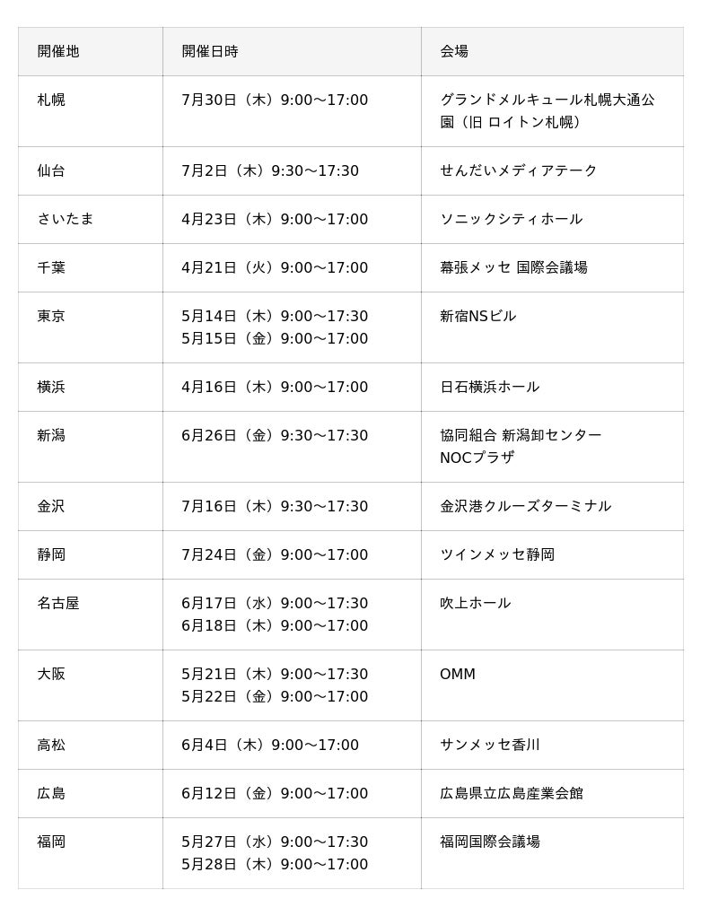 ※事前登録がない場合、当日受付にて入場登録が必要となります。
