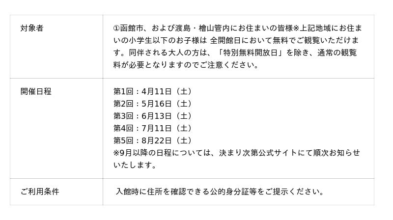 地元の皆様にこそご覧いただきたいという想いから、函館市、および道南地域(渡島・檜山管内)にお住まいの皆様を対象に、国指定重要文化財である「旧相馬家住宅」主屋を無料でご観覧いただける特別公開日を設けます。