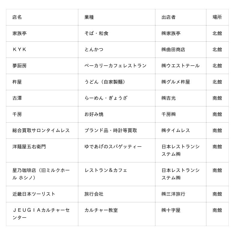 なお、リニューアル工事着工に先立ち、2026年3月1日から地下1階の飲食・サービス店舗11店舗が営業を再開します。これらの店舗は、高島屋堺店出店時と同じ区画での営業となります。