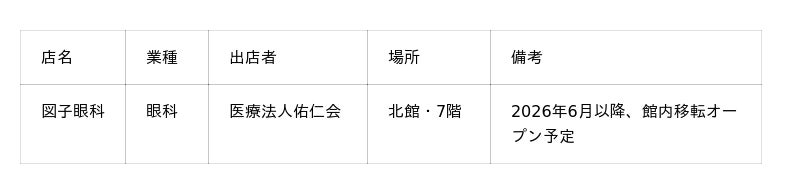 この他のテナント等の詳細につきましては、決定次第お知らせいたします。