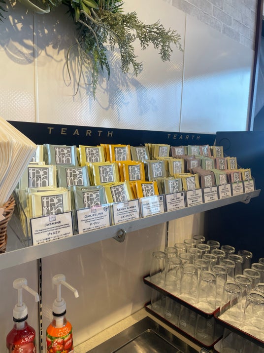 なかでもおすすめは10種類から選べるTEARTH(ティーアース)のティーバッグのディスプレイ。上質な香り・選ぶ楽しさ・小さな贅沢・今日はどの一杯にする?