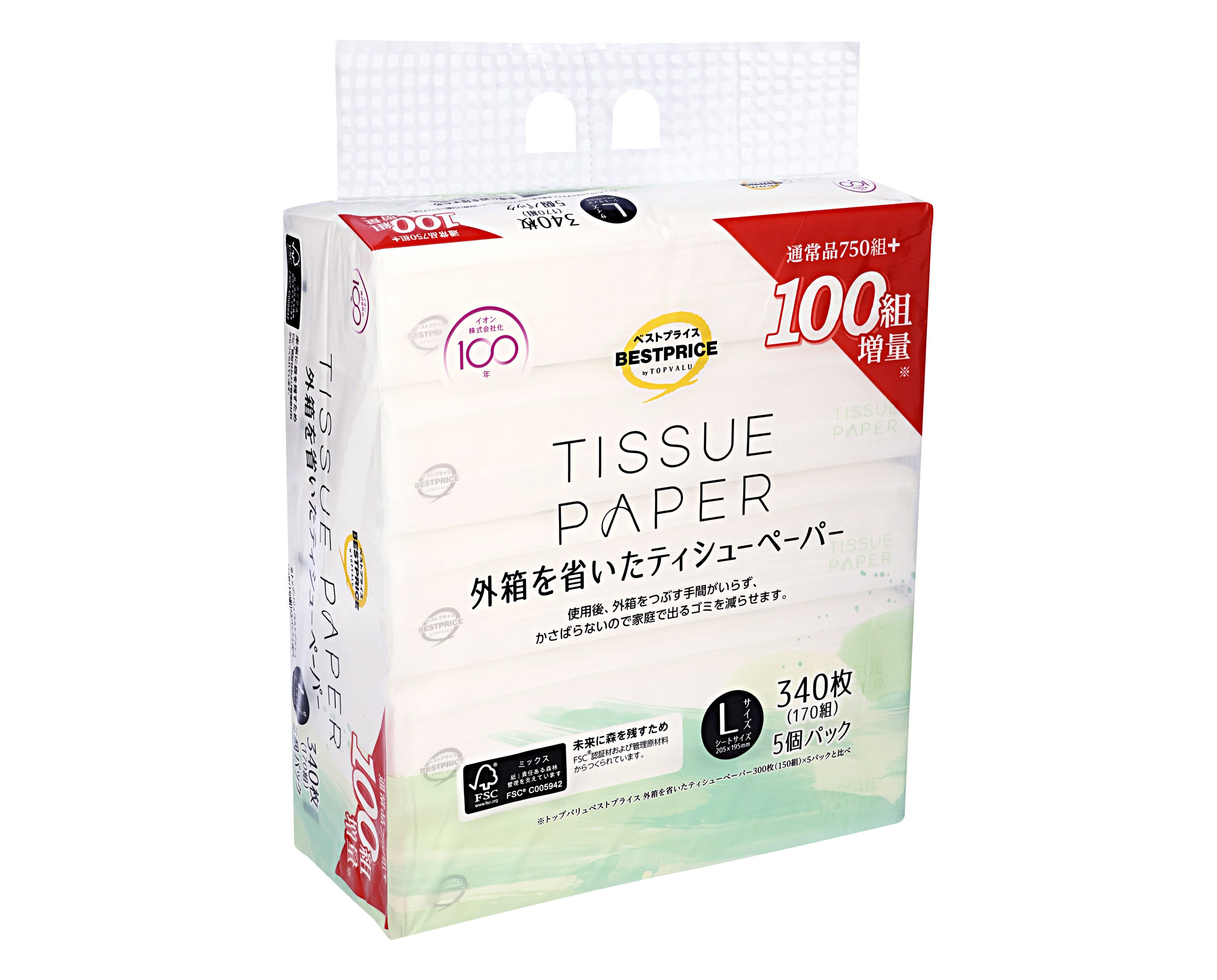 トップバリュベストプライス 外箱を省いたティシュー発売日:3月10日