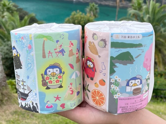ぺるりん包装紙などでトイレットペーパーを包んで製品化し、お持ち帰りいただけます。