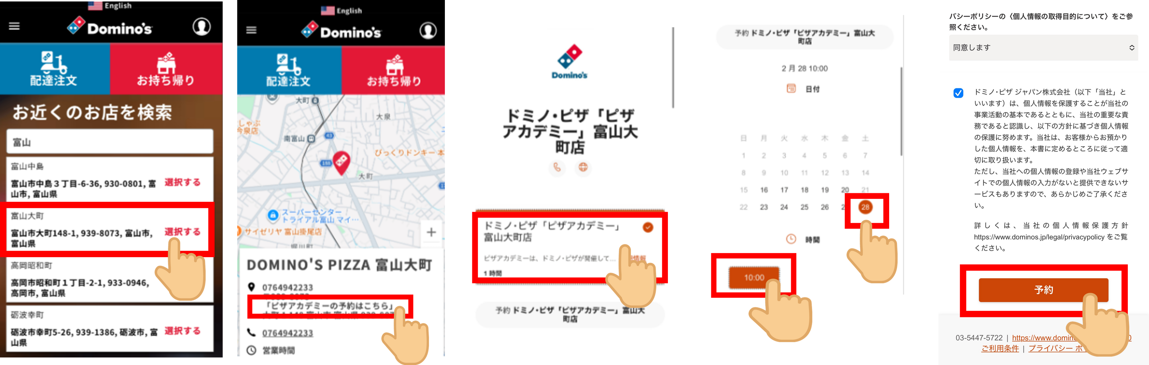ピザアカデミーとは、年間を通してドミノ・ピザが開催している、幅広い世代に大人気のピザ作り体験教室です。ピザ作りのプロであるドミノクルーに教えてもらいながら、自分だけのオリジナルピザ作りを体験することができます。ご自身で作ったピザは、店内もしくはお持ち帰りでお召し上がりいただけます。ご兄弟やご家族での参加もOK。予約は各店舗のWebページから先着順で受付となりますので、この機会にぜひご参加ください。