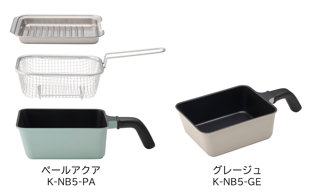 カラーはToffyシリーズで人気の「ペールアクア」と「グレージュ」の2色展開。揚げ物をぐっと身近にしてくれる、コンパクト万能鍋の登場です。