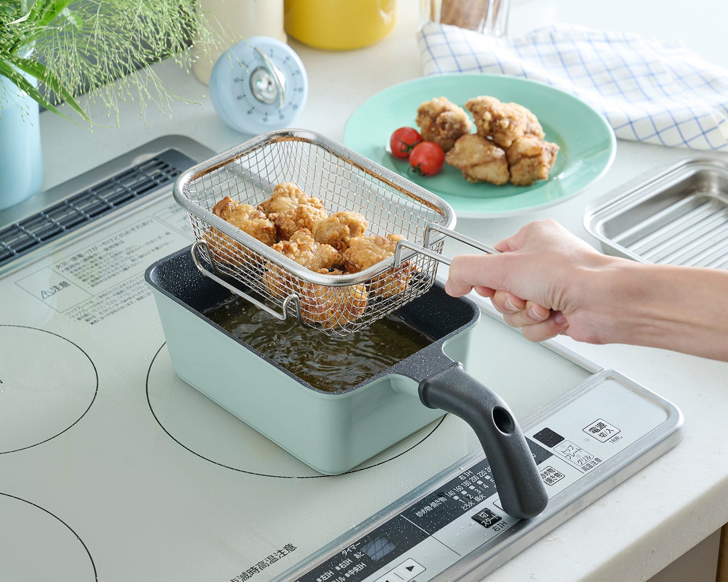 少ない油でサクッと手軽に揚げ物料理!「Toffy 角型揚げ鍋<フライバスケット付き>」発売