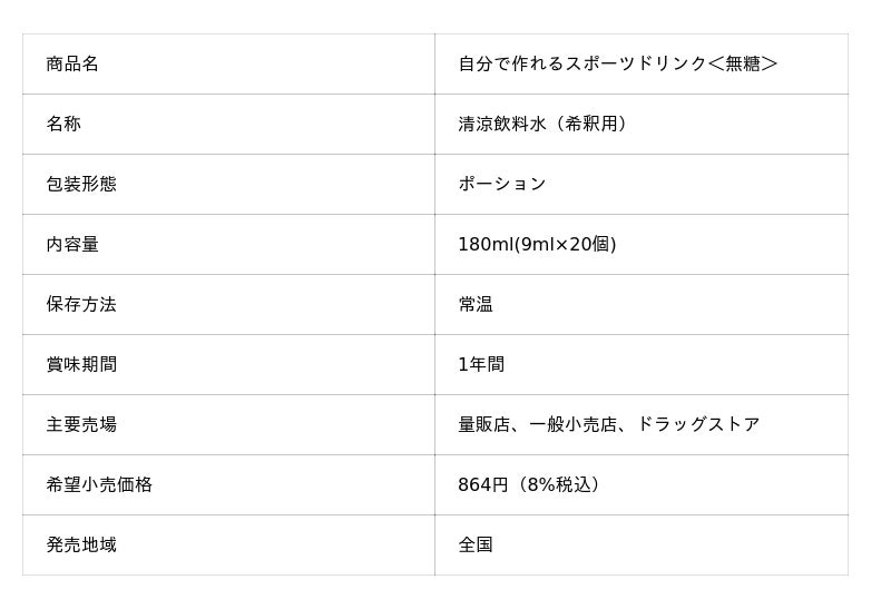 ご好評いただいております"自分で作れるスポーツドリンク"のシリーズ品として、新たに無糖タイプを発売いたします。