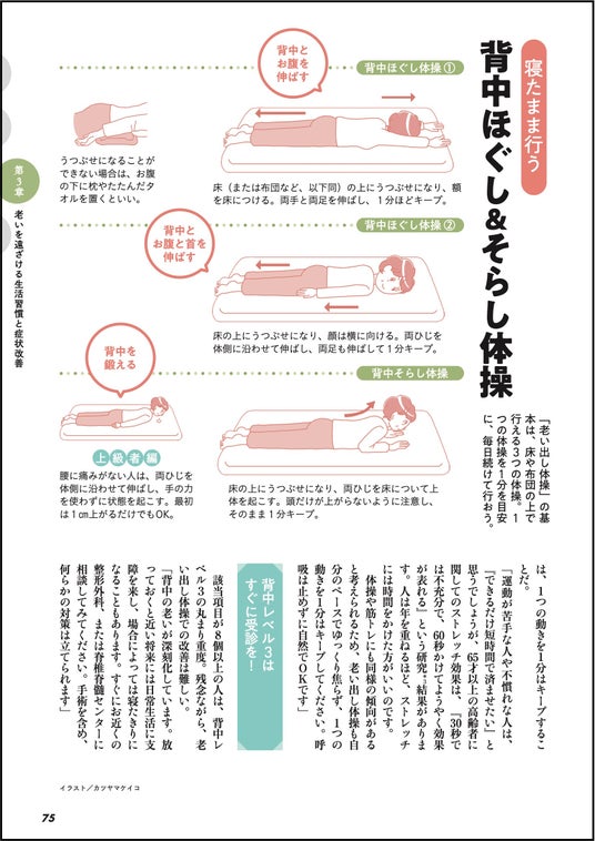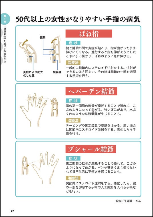 目や耳、手指の不調のほか、便秘や夜間頻尿、認知症など、50才を過ぎたあたりから感じ始める体の不調や病気について、解消法と治療法を解説。なんとなく感じていた不調の原因がわかるほか、何科の病院にかかればいいのかわからなかったという人にもズバリ。今すぐ役立つ、この世代特有の体の変化に特化した情報が網羅されています。