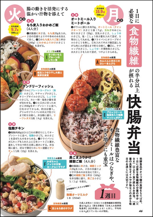 ・食物繊維、 発酵食品、 オリゴ糖で整える「便秘解消2週間弁当」