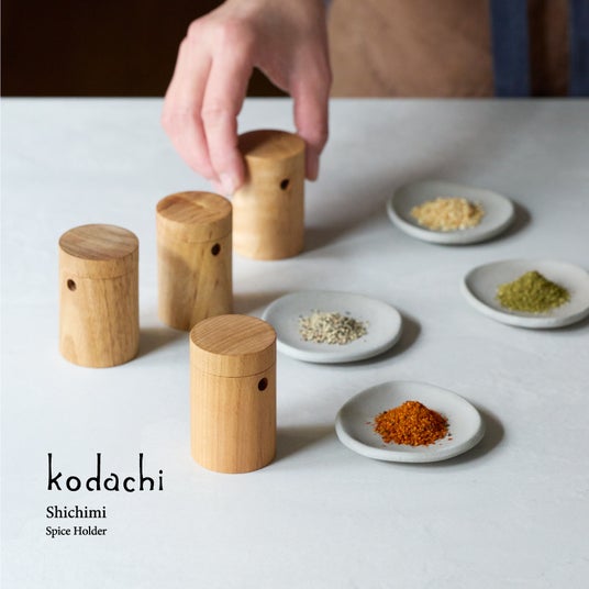 食卓に、小さな森の風景を。暮らしを愉しむ料理家の視点と地域の木を活かす「やまとわ」の技術から生まれた、木の七味入れ「Kodachi」発売。