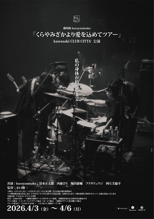 2025年11月9日に行われたkurayamisaka 初の全国ワンマンツアーのファイナル、CLUB CITTA'での公演をアンコール含め全17曲を劇場上映いたします。すべての上映日でメンバーによる舞台挨拶を実施します。