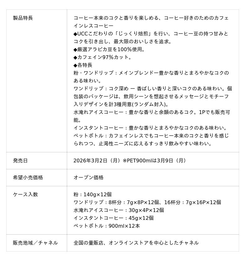『UCC おいしいカフェインレスコーヒー』シリーズについて