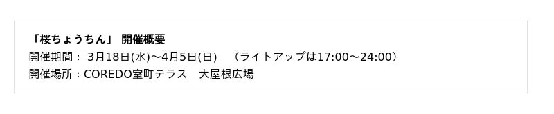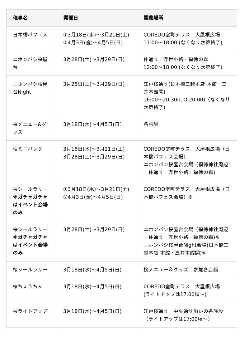 日程:2026年3月18日(水)~4月5日(日) 19日間 場所:日本橋室町エリア