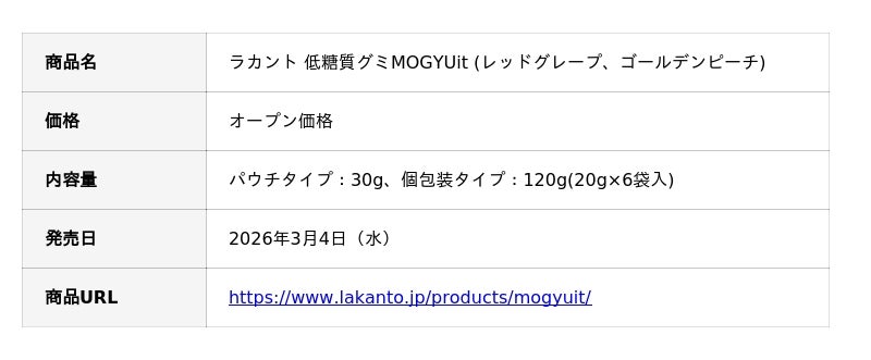 サラヤ株式会社(本社:大阪/代表取締役社長:更家悠介)は、「ラカント 低糖質グミMOGYUit(モギュイット)」を2026年3月4日(水)より新発売することをお知らせいたします。