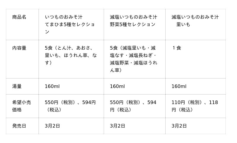 「いつものおみそ汁」シリーズを新たなラインアップで強化