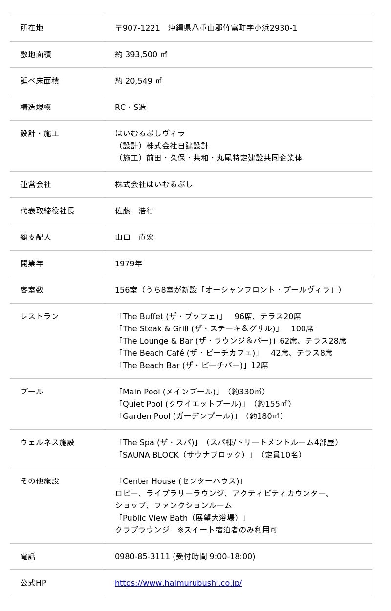 ※参照リリース「『はいむるぶし』2025年7月15日(火)リニューアルオープン」