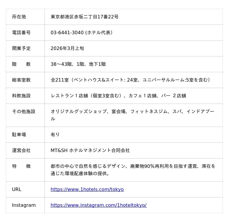 場所: 1 Hotel Tokyo(東京都港区赤坂二丁目17番22号)