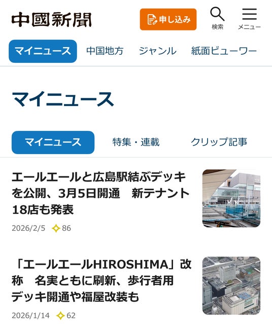 株式会社中国新聞社(本社:広島市中区、代表取締役社長:岡畠鉄也)は2026年3月1日、ニュースサイト「中国新聞デジタル」を大幅にリニューアルいたします。