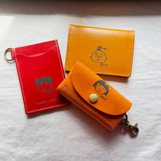 日本製のヌメ革を生かしたシンプルデザイン。当該商品を購入し刻印を希望された方に店内でまるちゃん、永沢君のレーザー刻印を施します。