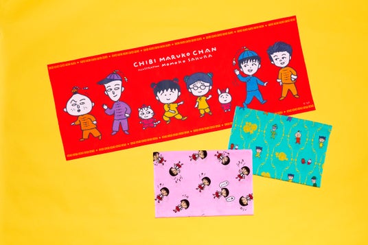 日本橋の老舗「戸田屋商店」の手ぬぐい。綿本来のやわらかな風合いはそのままに、ちびまる子ちゃんたちの緻密な描写と豊かな色彩で仕上げました。