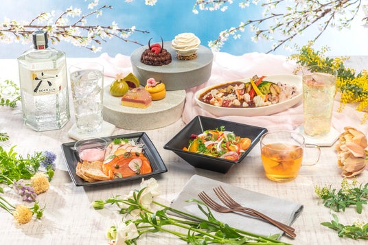 ●ROKU<六>を使用したオリジナルカクテルと和風スイーツのセットが特典の予約席事前予約制の特別席「ブロッサムシート」では、春の草花に囲まれたプライベートな空間で、ゆったりとしたひとときをお楽しみいただけます。さらに、ご予約いただいたお客様には、特典としてドリンクとスイーツのスペシャルセットをご用意。スペシャルセットでは、「ROKU<六>」のオリジナルカクテルと、桜・山椒・山葵・味噌などの和素材を使用した特製スイーツを組み合わせた、上質な味わいをお楽しみいただけます。春の息吹を感じる特別な空間で、ここでしか味わえない贅沢なひとときをぜひご体験ください。