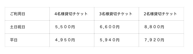 ※各チケットは、指定の人数より多い人数でのご利用はできかねます。