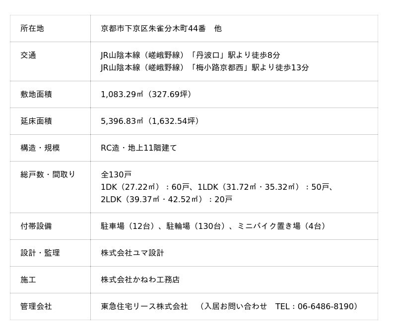 賃貸マンション「リシュドール梅小路」(京都市下京区)の竣工について