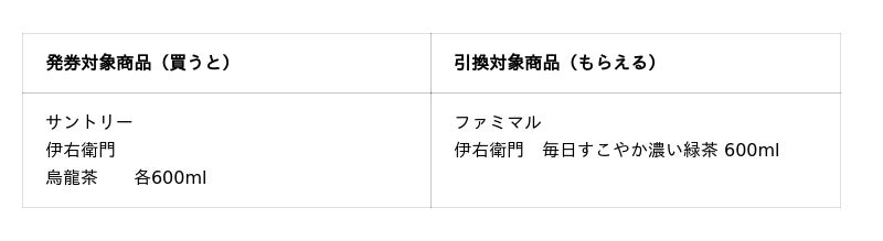 今回のキャンペーンでは、2026年3月3日(火)から3月9日(月)まで、対象のサントリー「伊右衛門」もしくは「烏龍茶」を買うと、翌週にファミリーマートのプライベートブランド「ファミマル」の「伊右衛門 毎日すこやか濃い緑茶」が1本もらえる無料引換券が発券されます。