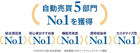 トライオートFXは、FX自動売買サービスとして、「総合満足度」「初心者オススメ度」「機能充実度」「期待収益性」「カスタマイズ性」の5部門でNo.1を獲得し、総合満足度は2年連続No.1となりました!