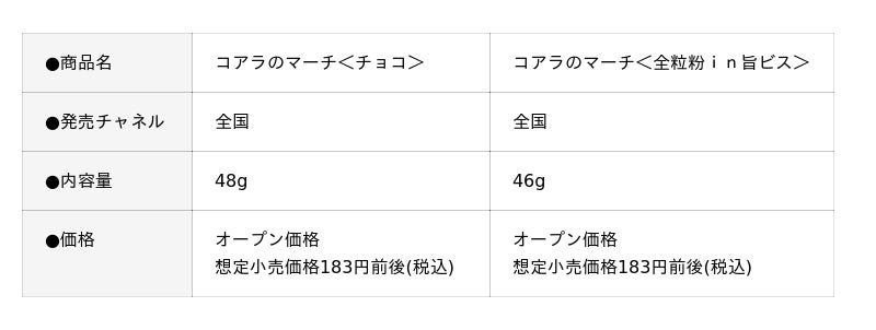 発売43年目を迎えた「コアラのマーチ」を大幅にリニューアルし、「コアラのマーチ<チョコ>」「コアラのマーチ<全粒粉in旨ビス>」を2026年3月17日(火)より全国で発売します。本商品は、「大人もおいしく楽しみたい」というお客様の声を受け、お子さまはもちろん、大人の皆さまにももっとおいしいと感じていただけるよう、ビスケットの食感とチョコレートの味わいを見直しました。また、パッケージデザインも刷新。発売当初からパッケージの正面で親しまれてきた"リアルコアラさん"は今回を機に卒業し、今後は"コアラのマーチくん"がブランドの"新しい顔"として、商品を彩ります。