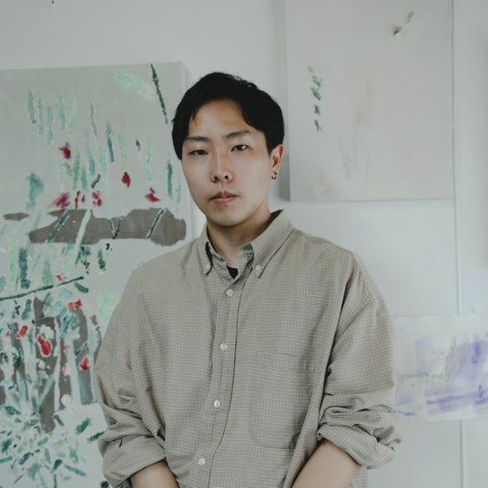 本展では、アーティスト・藤本純輝が事前に五島を訪れ、島の光や風、草花の気配と向き合いながら制作した新作を中心に展示いたします。支持体として用いる布の質感や重なりを活かし、やわらかな光や空気の流れを描き出す本作は、絵画でありながら物理的な奥行きを感じさせる空間を生み出します。