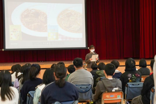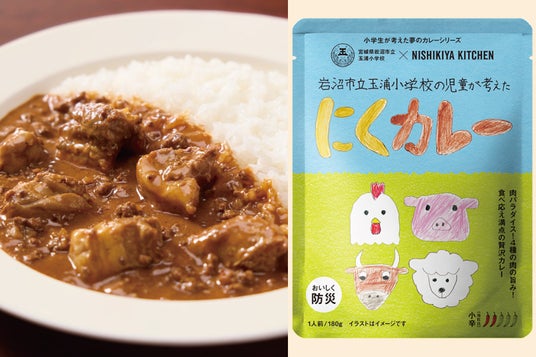 「世界の料理を『カンタン』に。」をコンセプトに掲げ、レトルトカレーを中心に約120種類のレトルト食品を販売する専門店NISHIKIYA KITCHEN(ニシキヤキッチン)(株式会社にしき食品 本社:宮城県岩沼市、代表取締役社長:菊池洋一)は、2026年2月13日(金)に宮城県岩沼市立玉浦小学校(以下、玉浦小)の児童と一緒に企画開発したレトルトカレー2品「りんごやきにくカレー」と「にくカレー」のお披露目試食会を開催しました。ニシキヤキッチンおよび、無印良品(株式会社良品計画 本社:東京都文京区、代表取締役社長:清水智)のスタッフが2025年4月から合計9回の授業を行い、児童と共に完成させたカレーです。当日は、合計約110名が参加し、玉浦小6年生の児童と一緒に2商品の試食をした他、ニシキヤキッチンから玉浦小全児童へ完成したレトルトカレーのプレゼントも行いました。児童たちの美味しそうな笑顔が見られた本イベントの様子と共に、東日本大震災から15年という大切な節目に地元の小学生と取り組む意義と、「おいしく防災」に込めた想いをご紹介します。