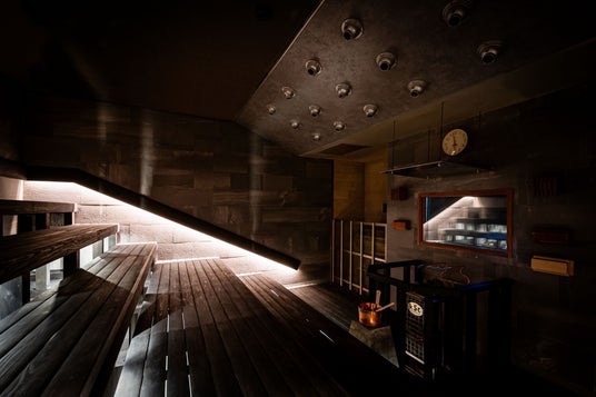 墨サウナ(男性): 「奈良墨」を使用した漆黒の空間で、30分に1回の「風神熱波」が楽しめます。