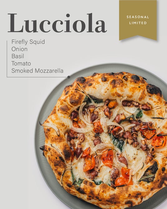 ルッチョラ(Lucciola)ホタルイカ、玉葱、バジル、トマト、燻製モッツァレラ