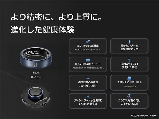 また、最大7日間持続するロングバッテリーと、わずか約3gの軽さによる快適な着け心地を実現しており、スマートリング初心者にも使いやすい仕様です。