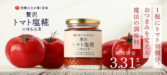 KURAND株式会社(本社:東京都足立区、代表取締役:荻原恭朗)は、当社が運営するオンライン酒屋「クランド」にて、トマト農家と酒蔵が共同開発した調味料「贅沢トマト塩糀×理系兄弟」を、2026年3月3日(火)17:00より販売いたします。(https://kurand.jp/products/zeitaku-tomatoshiokouji-rikei)