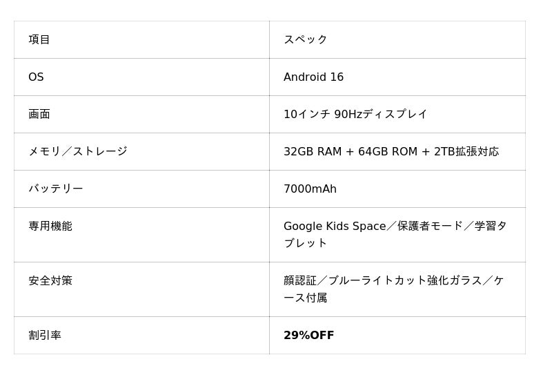 Android16 子供タブレット(保護者モード搭載)https://item.rakuten.co.jp/doogee-store/p10kid/