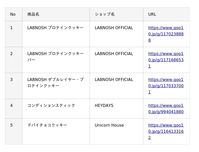 【1位】LABNOSH プロテインクッキー/ショップ名:LABNOSH OFFICIAL手作りのような味わいで、たんぱく質や食物繊維が摂れるプロテインクッキー。Qoo10限定の5種セットは食べ比べにもぴったり。