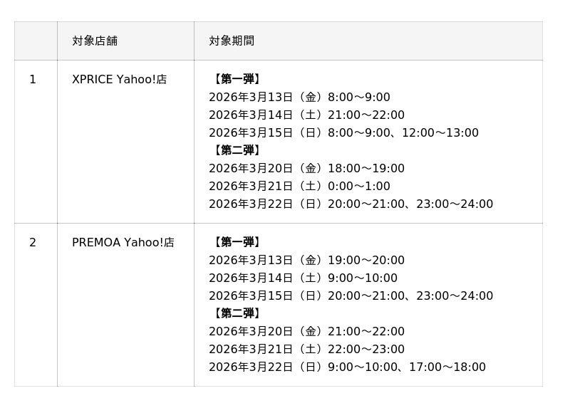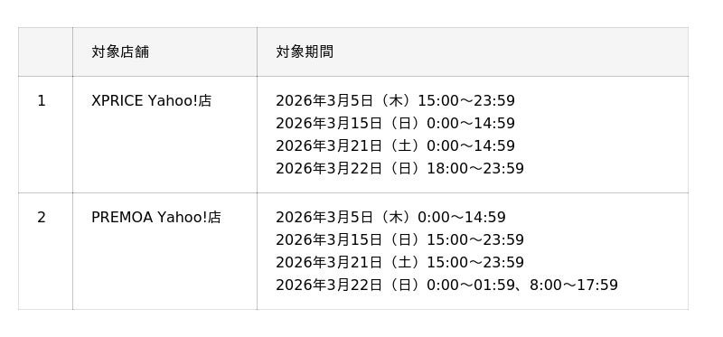 対象店舗:XPRICE Yahoo!店、PREMOA Yahoo!店