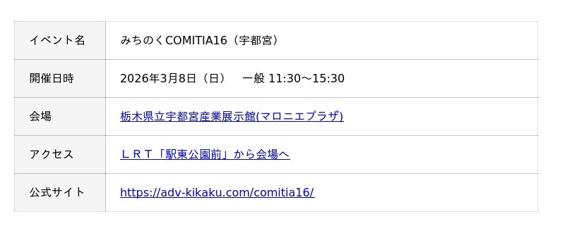 ◤3月8日開催『みちのくCOMITIA16(宇都宮)』に企業出展いたします!◢