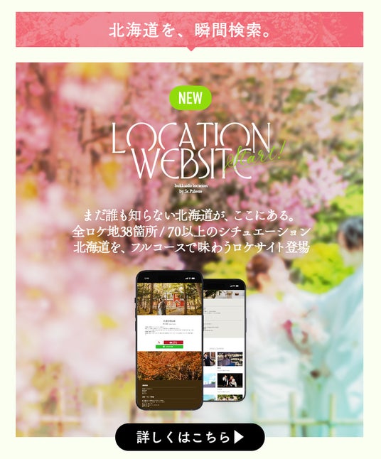 大通公園やモエレ沼公園など、札幌・旭川・帯広・函館エリア全38箇所以上の厳選ロケ地から、ふたりだけのストーリーに合う場所をセレクト可能。1日1組限定の「プレミアロケーションプラン」では、非日常の感動体験をお届けします。