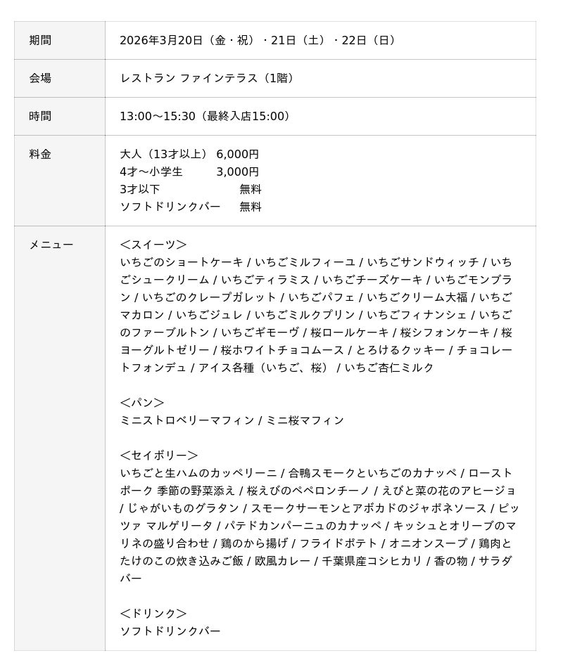 スイーツビュッフェ「Strawberry Bloom」 概要